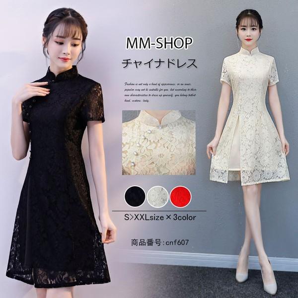 Amazon Co Jp ズオマ チャイナドレス 膝丈 半袖 夏 レース フレア アオザイ チャイナ風 ワンピース 結婚式 レディース 服 ファッション小物
